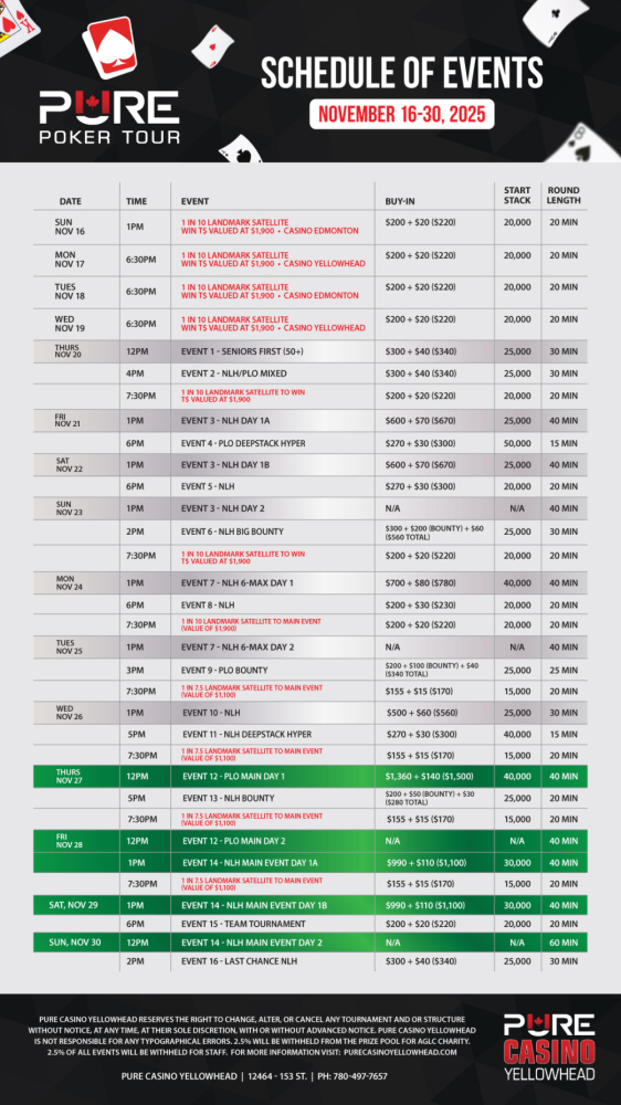 Looking for a spot to let the cards fly and walk away with some cash? Look no further than our poker room! See below for all our upcoming tournaments! Talk to one of our poker housemen for more details and to get in on the action!